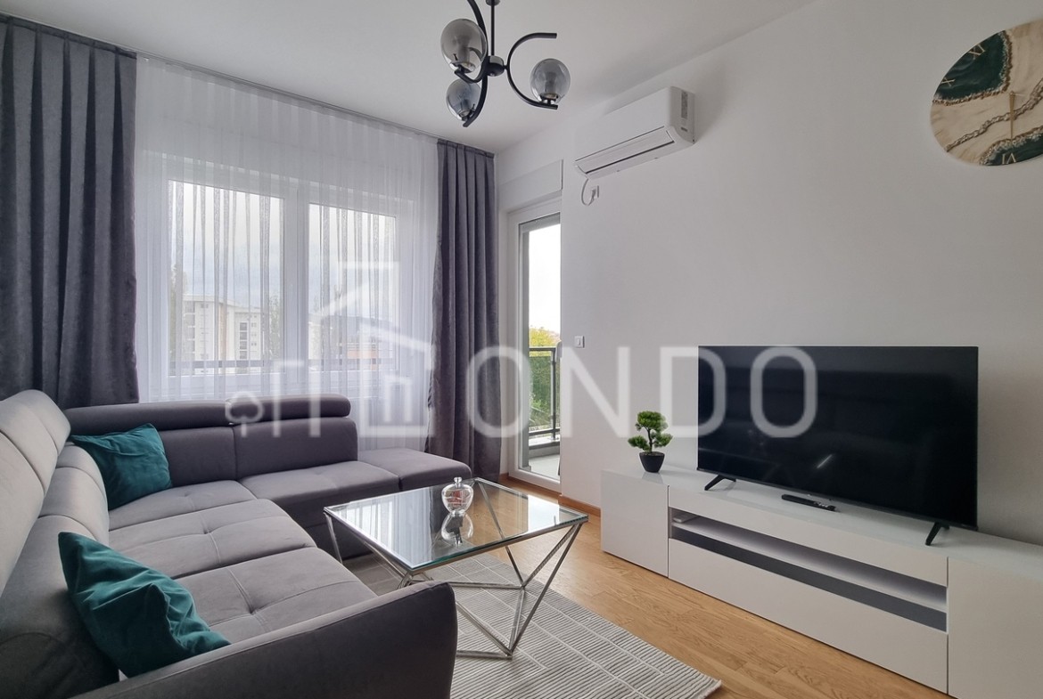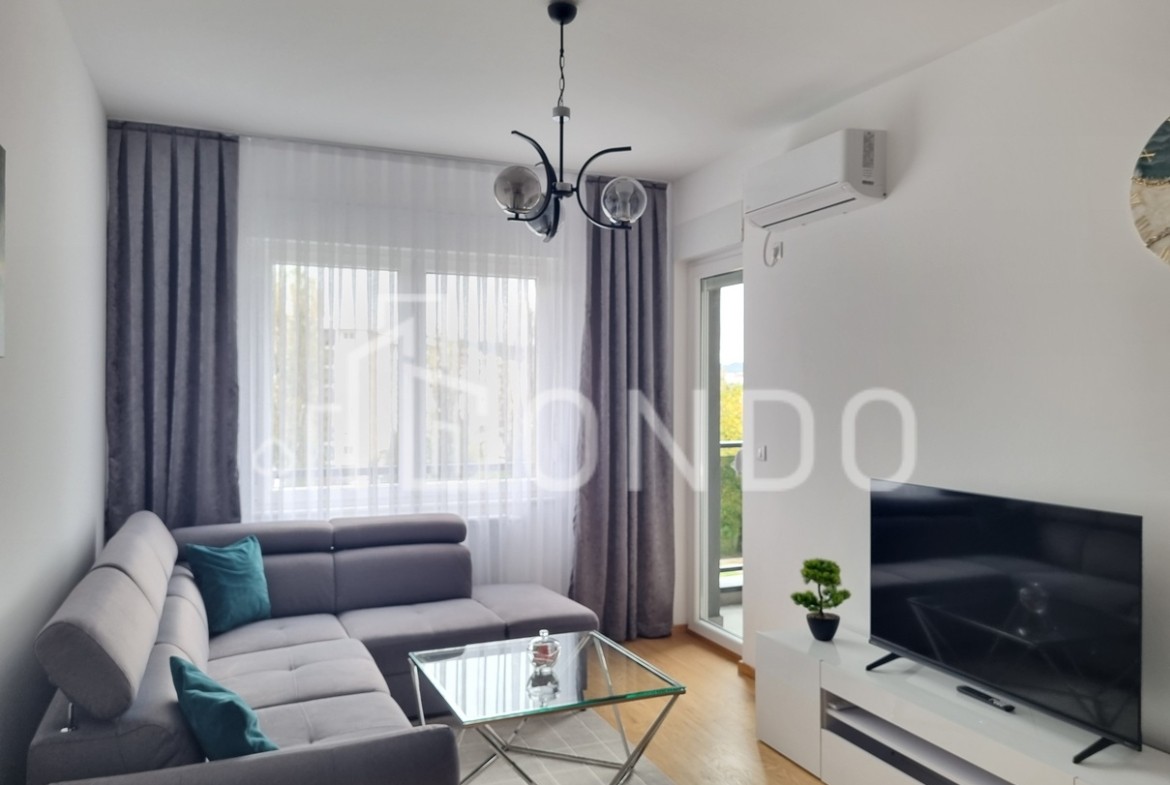 Stan je kompletno namješten, sve je novo i pod garancijom, a posjeduje sve neophodno za život. (TV, mašina za suđe, mašina za veš, klima, itd).