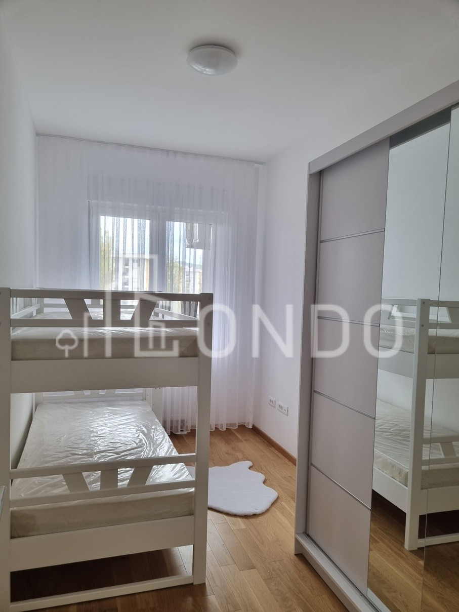 Izdaje se trosoban stan u naselju Ada, u novoizgrađenoj zgradi naselje Block 51. Zgrada je udaljena svega 25 minuta laganog hoda od centra grada. Stan se nalazi na trećem spratu, a zgrada posjeduje lift.