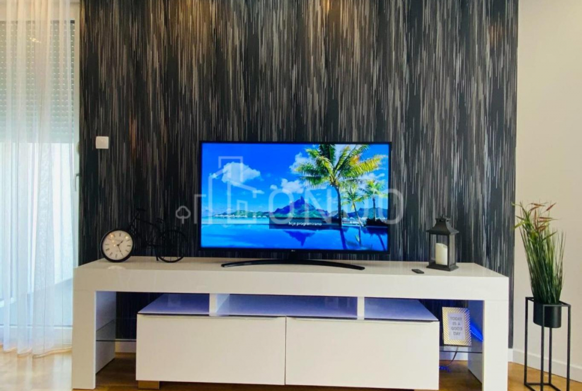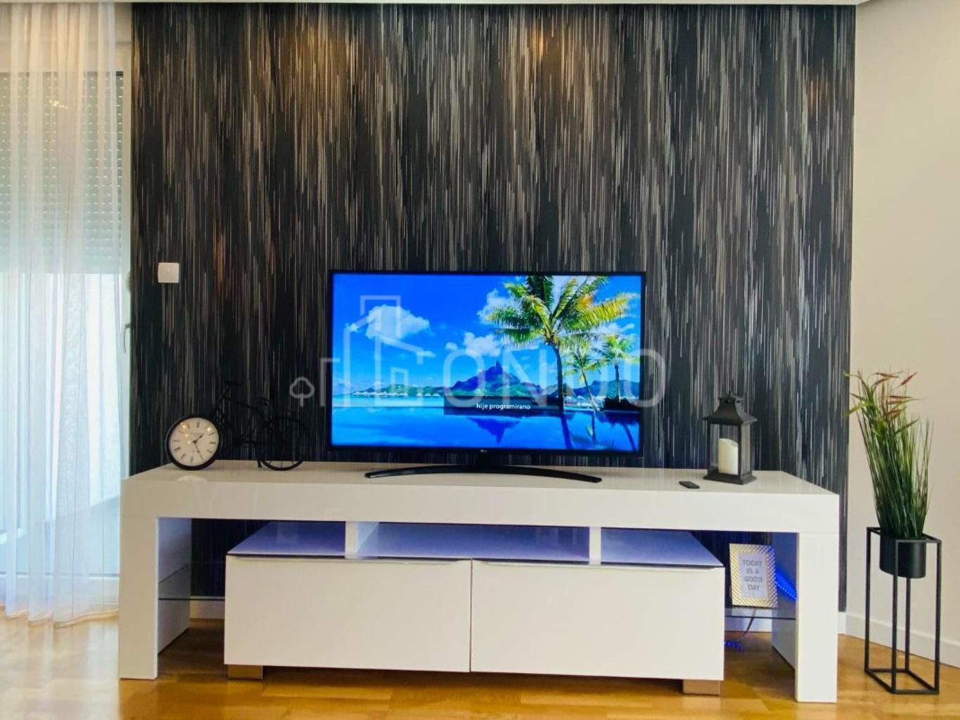 Stan je u potpunosti opremljen luksuznim namještajem i posjeduje vrhunsku kućnu opremu, posuđe, posteljinu i najsavremenije uređaje (klima, veš mašina, mašina za suđe, sušilica, aparat za kafu, itd).
