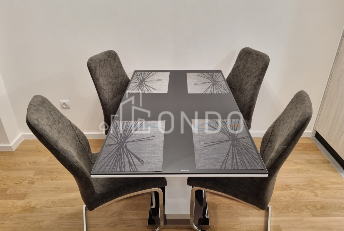 Površina stana je 42m2, a nalazi se na 4-om spratu u zgradi koja posjeduje dva lifta. Strukturu stana čine dnevni boravak sa trpezarijom i kuhinjom, spavaća soba, kupatilo i terasa.