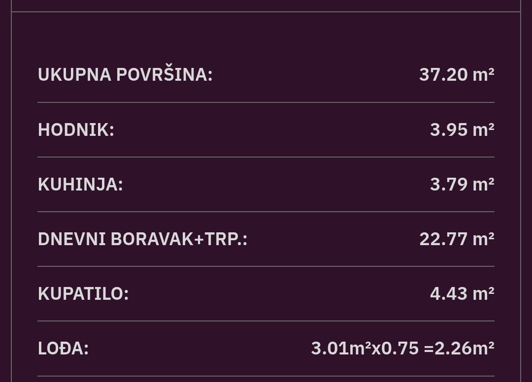 Veličina Nekretnine 37 m2
