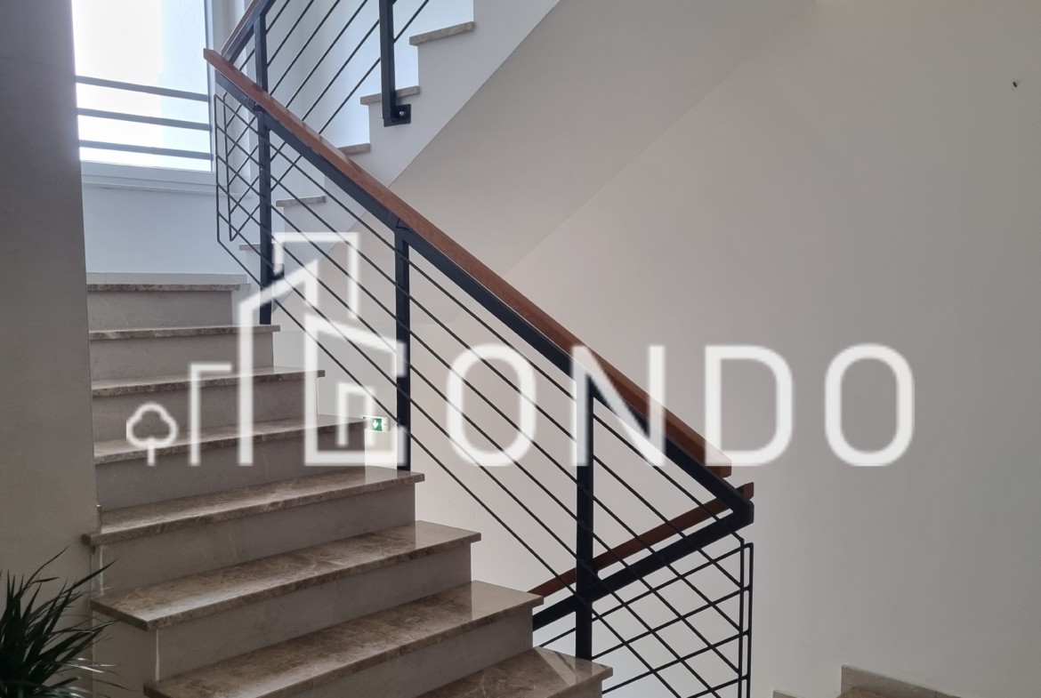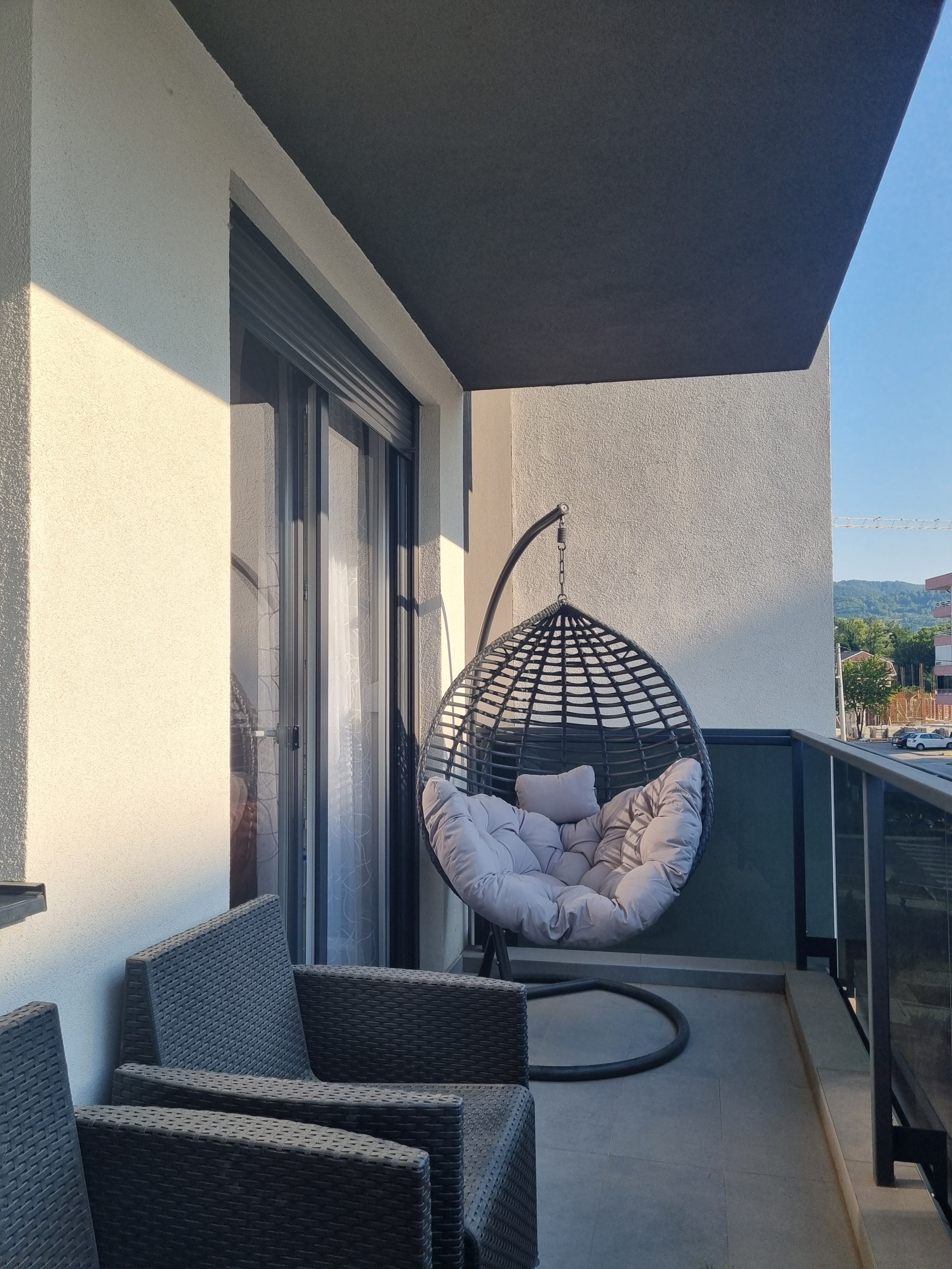 Nnalazi na prvom spratu u zgradi koja je useljena krajem 2023. godine, a zgrada posjeduje lift. Po strukturi je trosoban i sastoji se od otvorenog dnevnog boravka sa kuhinjom i trpezarijom, dvije spavaće sobe, kupatilom, wc-om i velikom terasom.