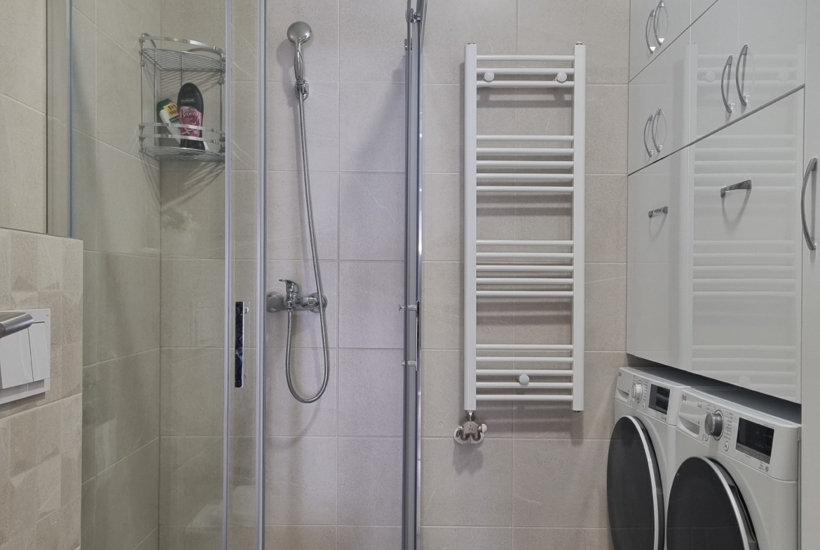 Veliki broj staklenih površina čini ovaj stan prozračnim i svijetlim, Grijanje u stanu je gradsko i posjeduje ugrađen kalorimetar za kontrolu potrošnje, a po potrebi se može grijati i na klimu u prelaznom periodu.