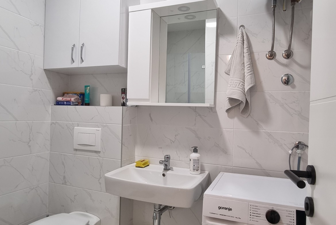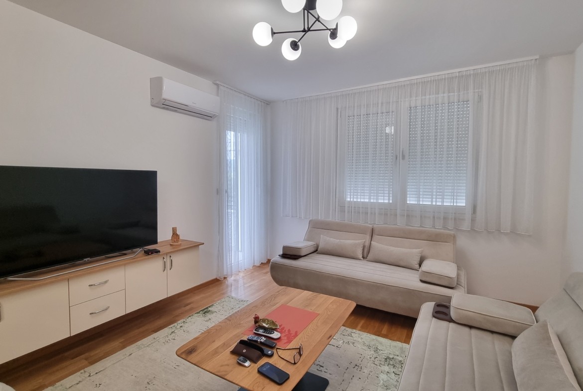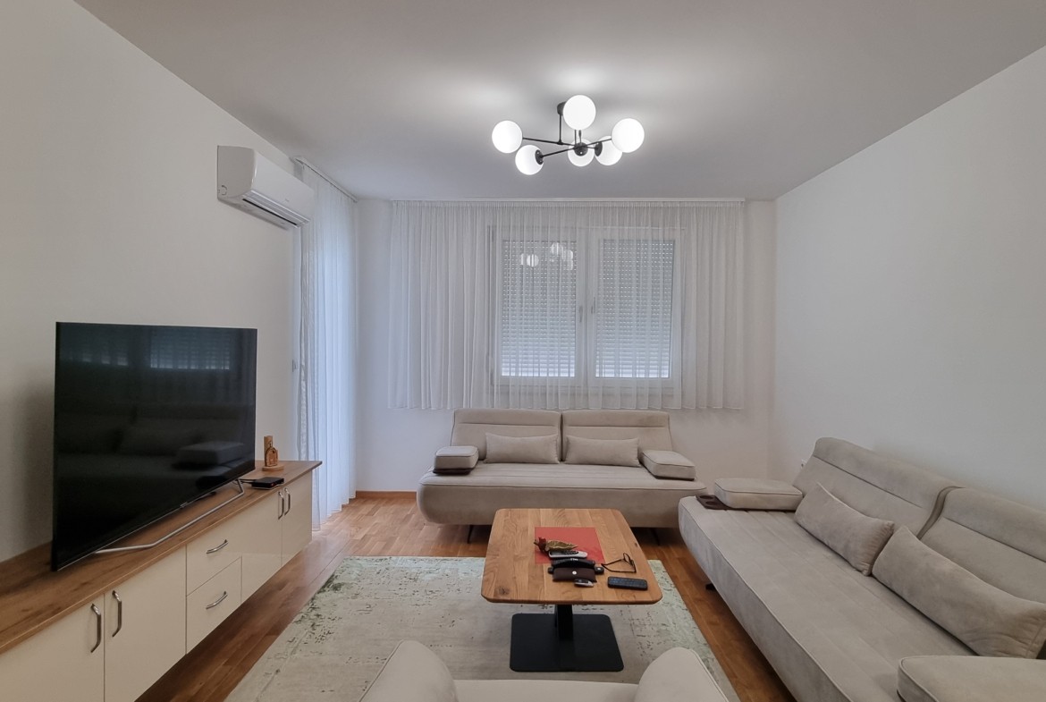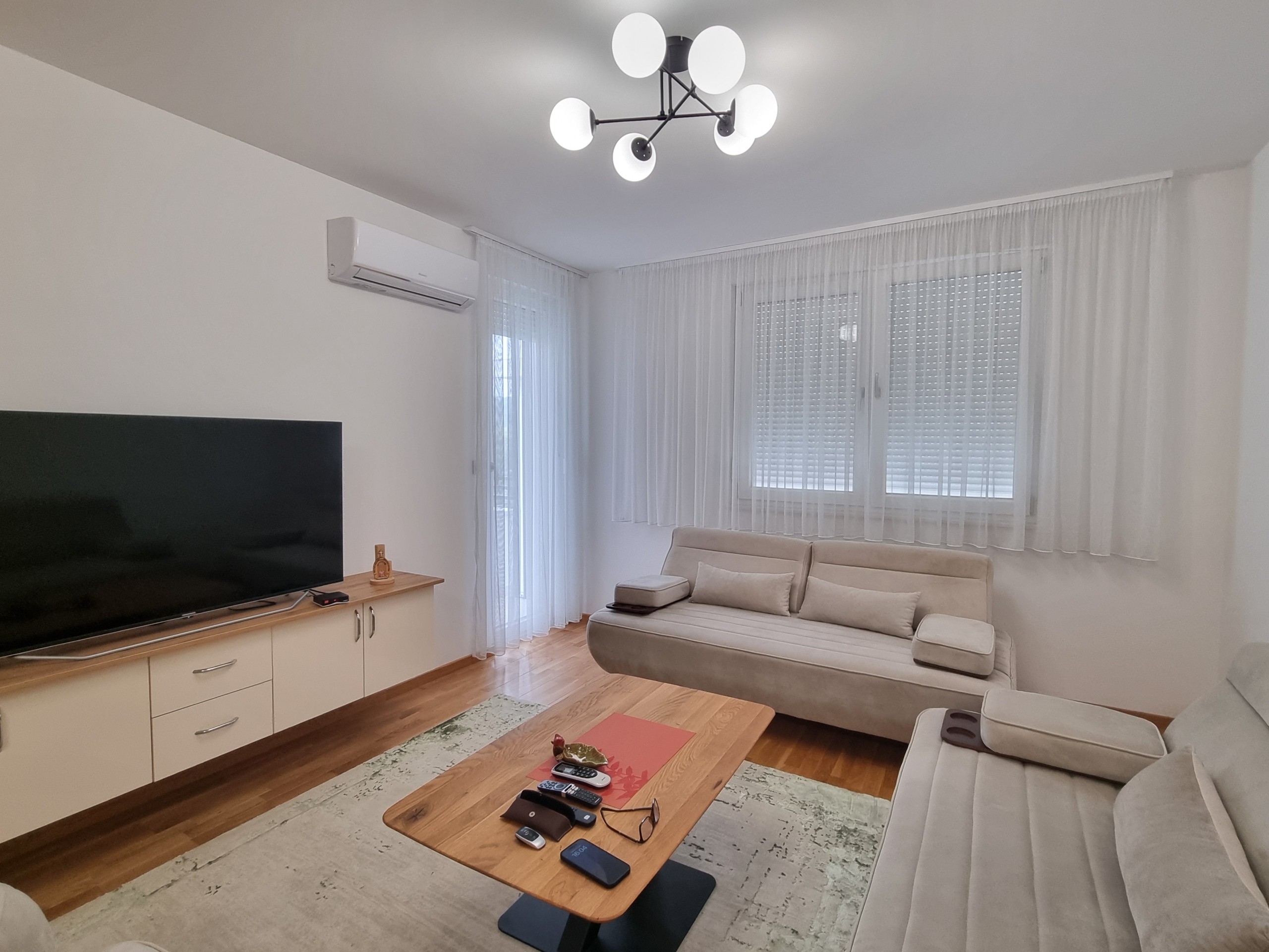 Stan je kompletno namješten, sve je novo i pod garancijom, a posjeduje sve neophodno za život. (TV, mašina za suđe, kombinovana mašina za veš i sušilica, klima, itd).