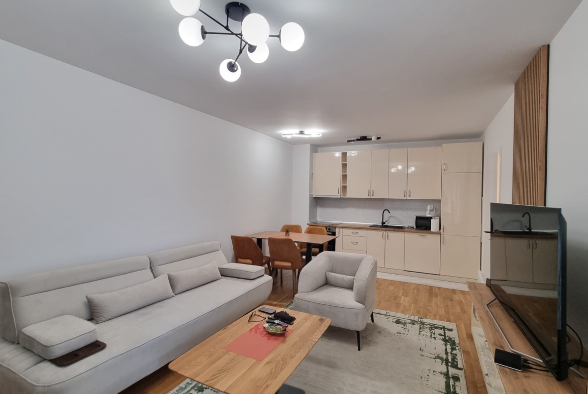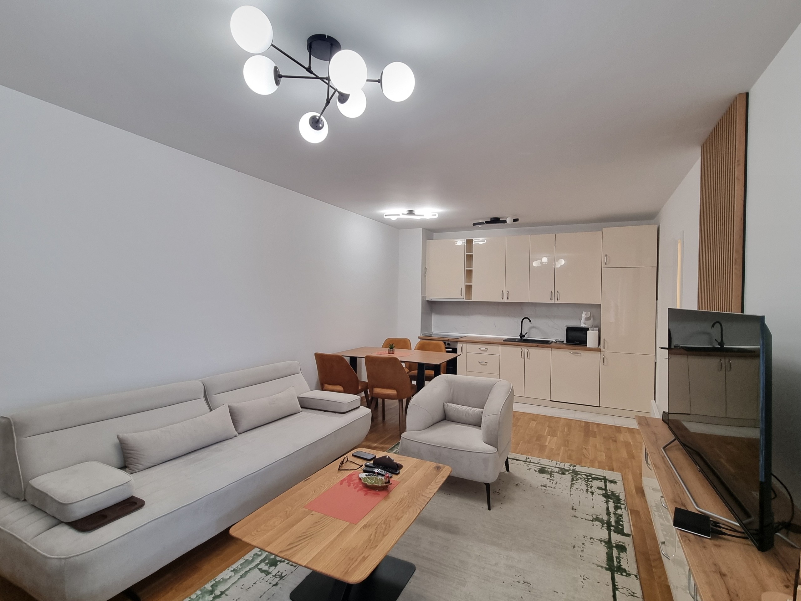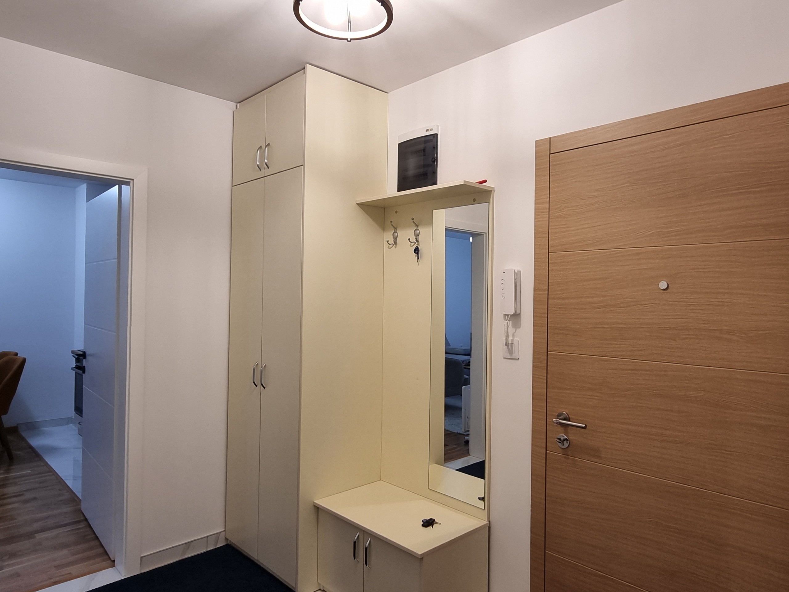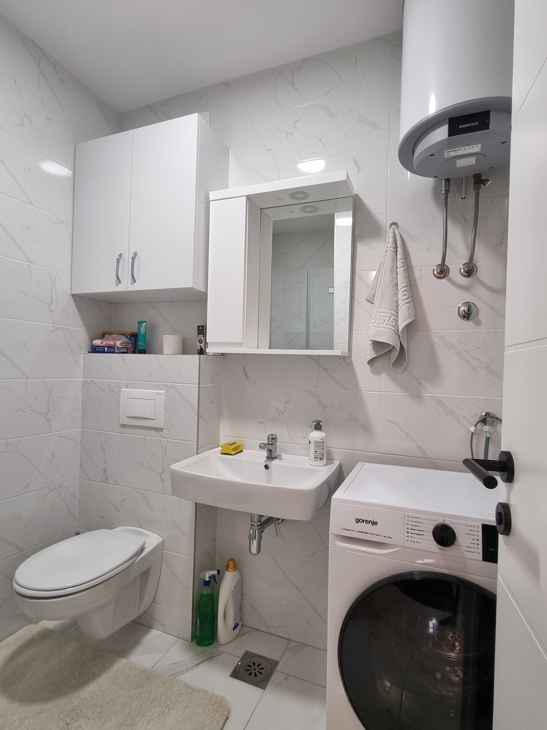 Stan je kompletno namješten, sve je novo i pod garancijom, a posjeduje sve neophodno za život. (TV, mašina za suđe, kombinovana mašina za veš i sušilica, klima, itd).