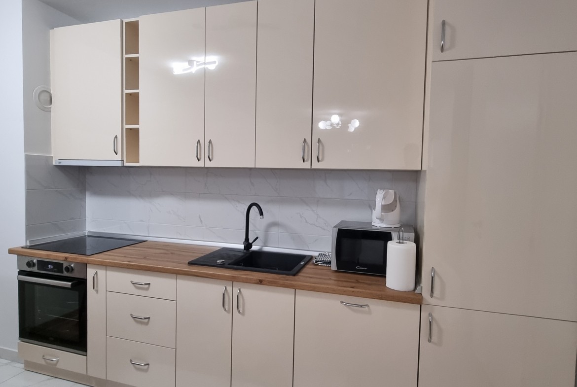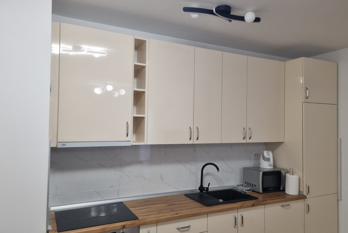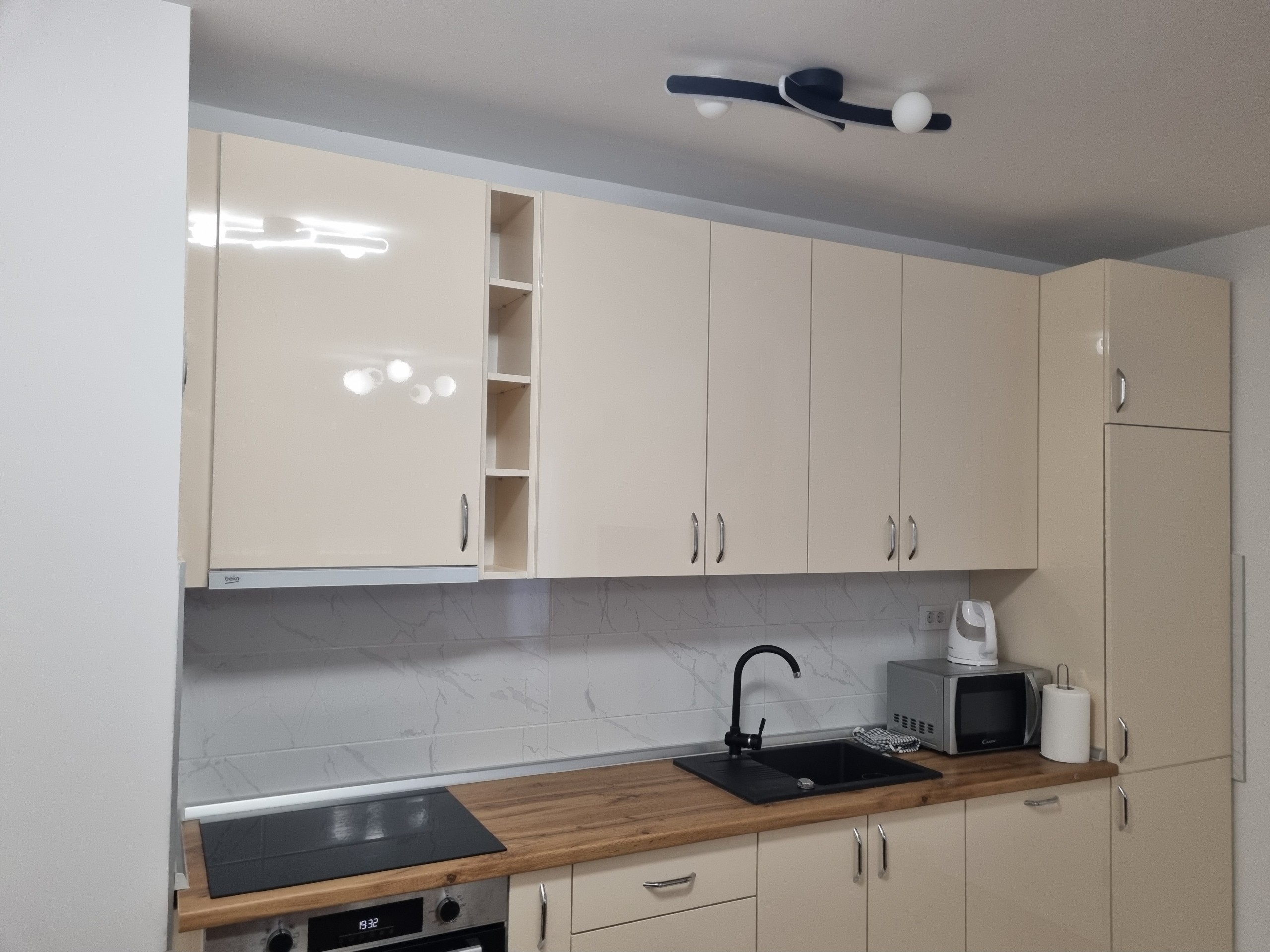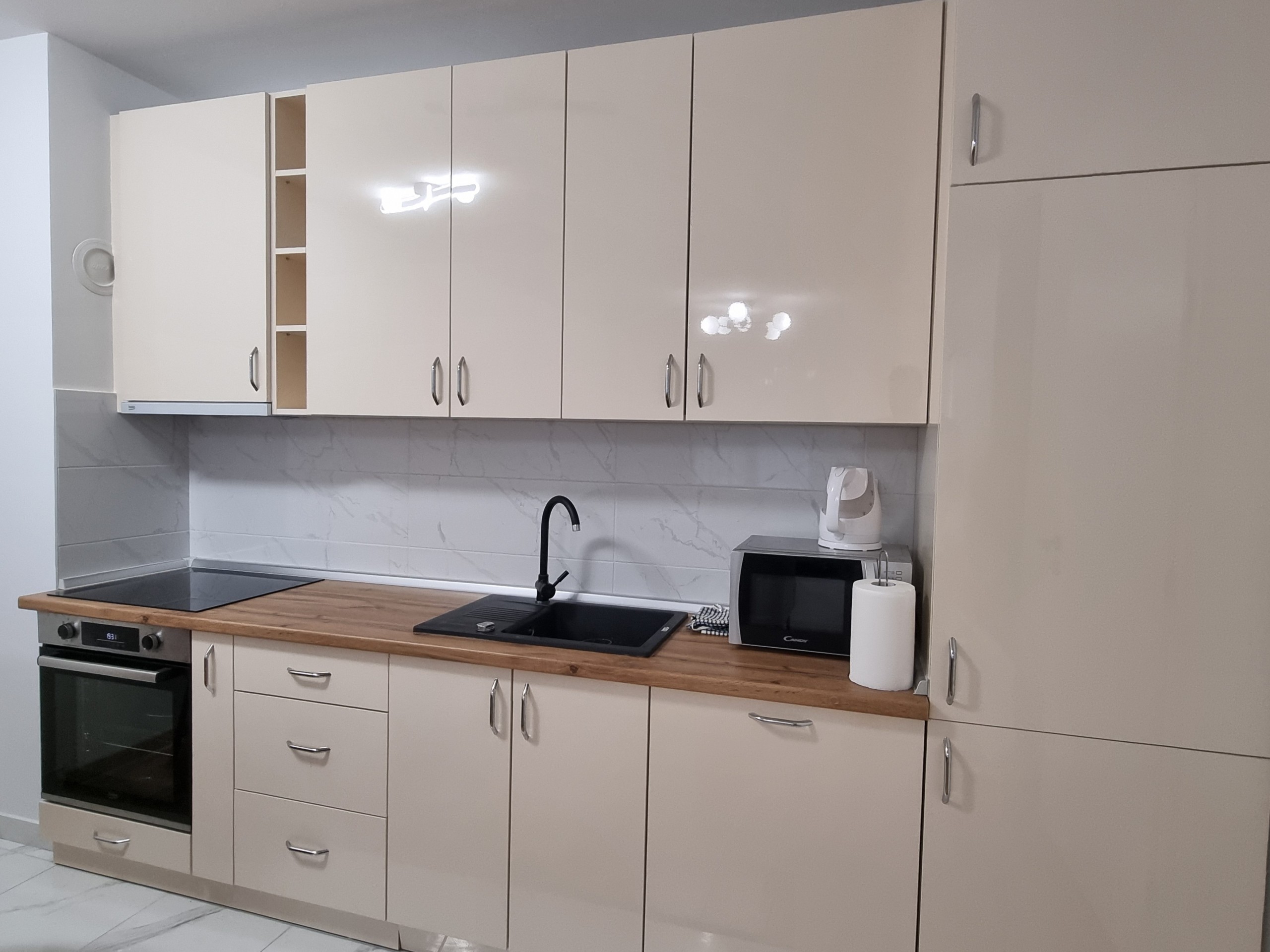 Stan je kompletno namješten, sve je novo i pod garancijom, a posjeduje sve neophodno za život. (TV, mašina za suđe, kombinovana mašina za veš i sušilica, klima, itd).