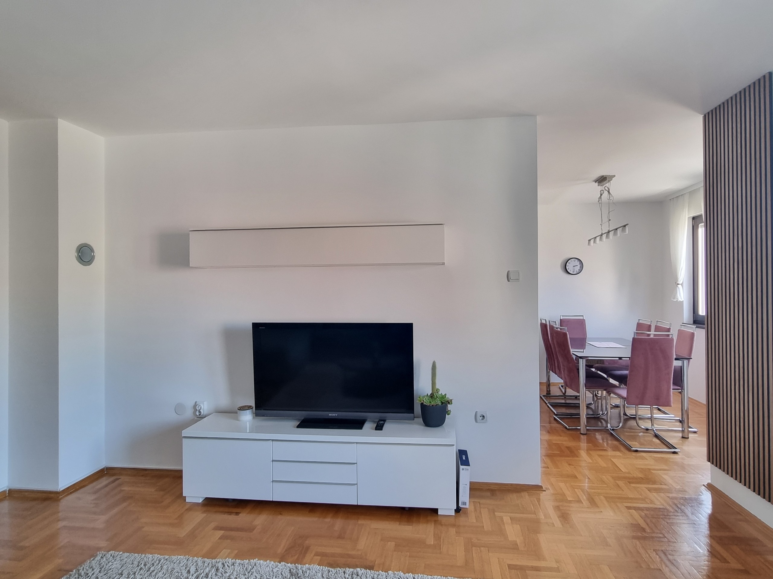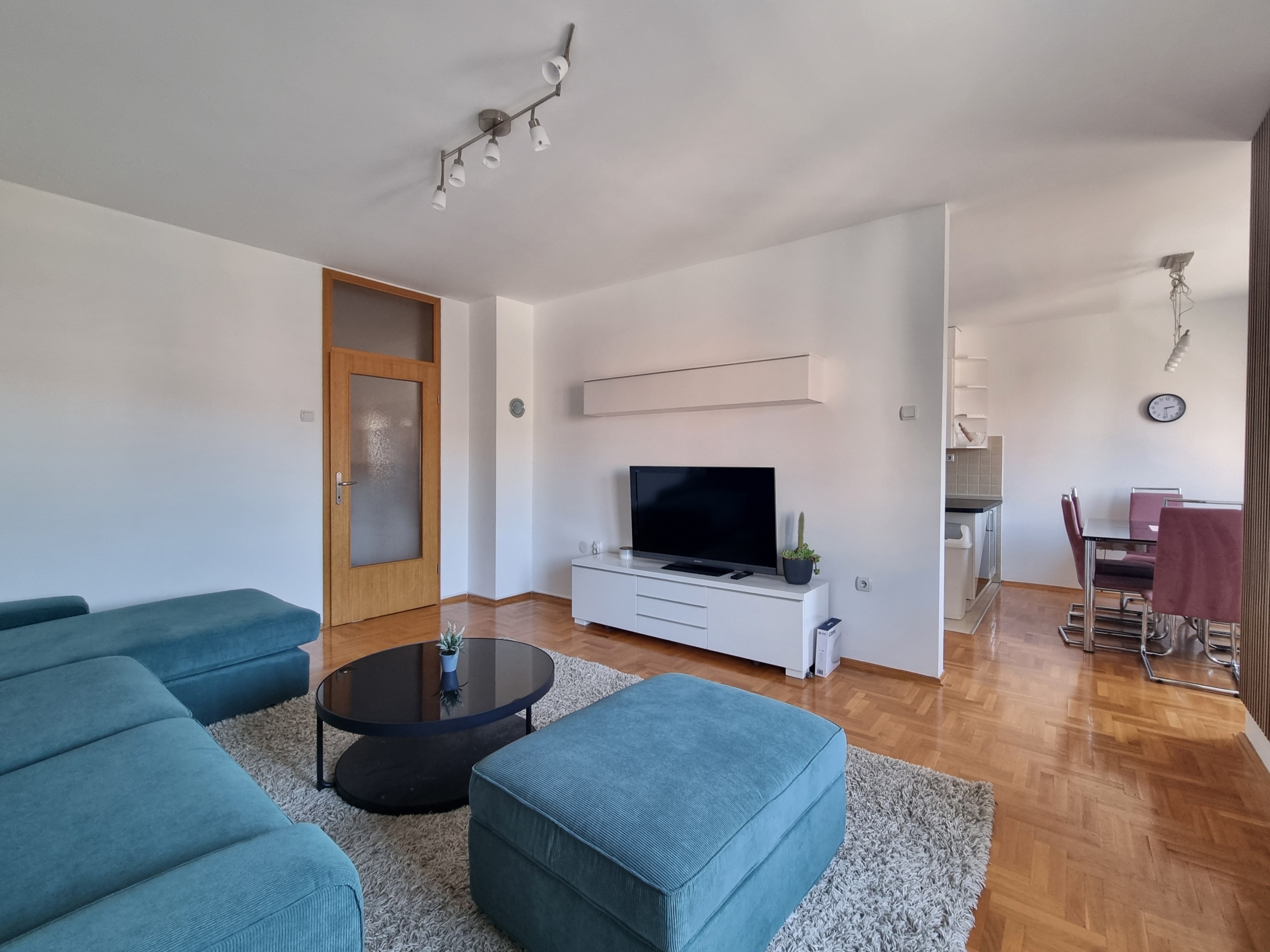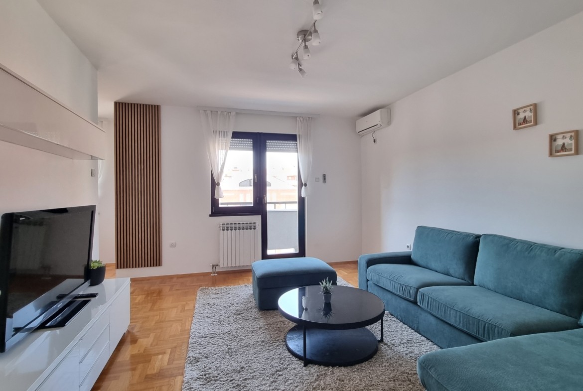 Stan je kompletno opremljen, a svi kućanski aparati su visokog kvaliteta. (TV, veš mašina, mašina za suđe, klima).