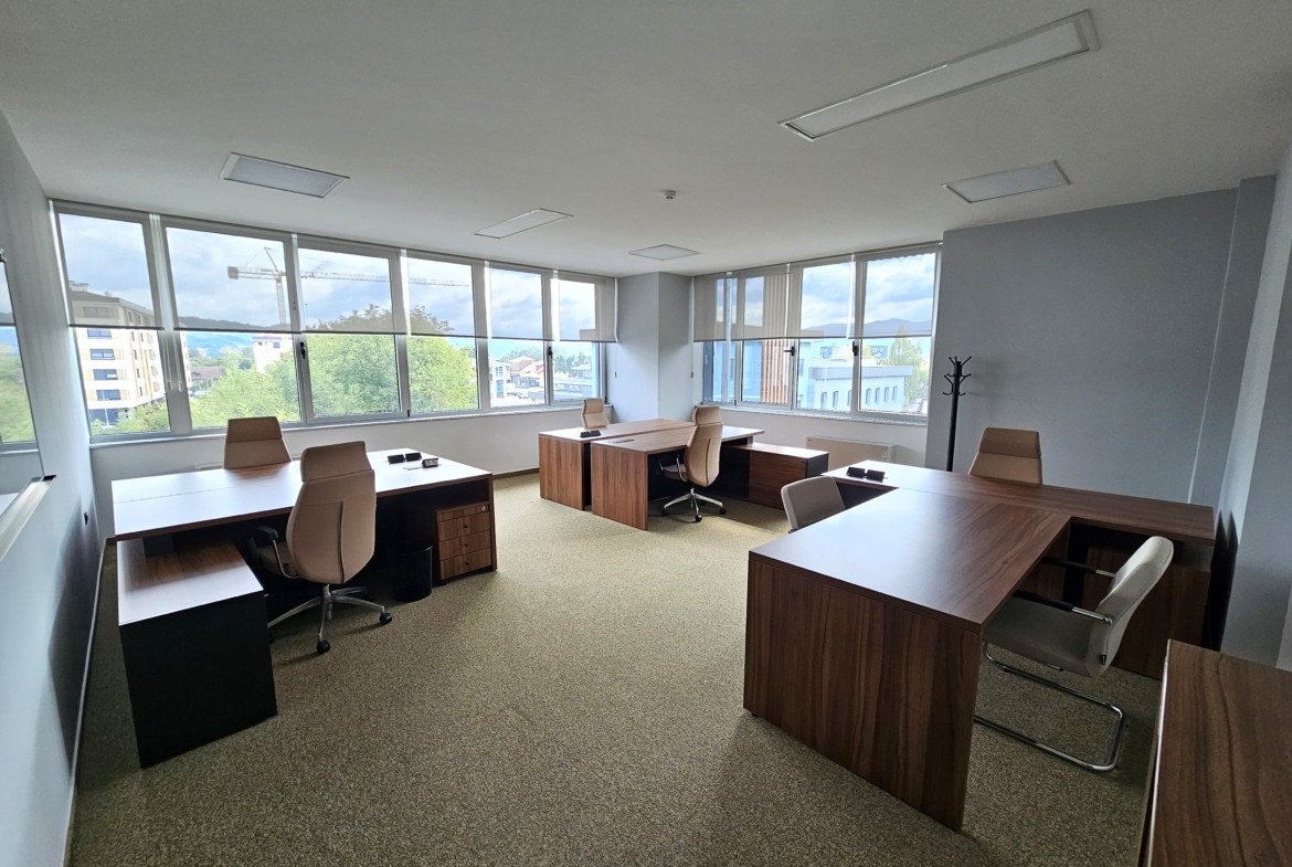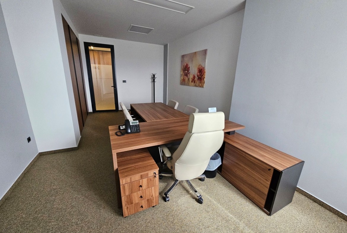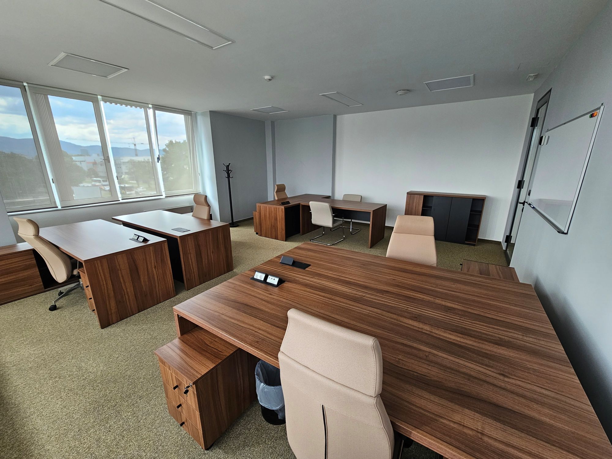 Trenutno su na raspolaganju dvije kancelarije koje je moguće iznajmiti pojedinačno ili obe zajedno ukoliko vam je potrebno ukupno 70m2. Kancelarija 1 od 22m2 (1x menadžerski sto koji je moguće razdvojiti, fiksni telefonski aparat, inverter klima, ormar), kancelarija 2 od 48m2 (1x menadžerski sto koji je moguće razdvojiti,+ 4x single, fiksni telefonski aparati, inverter klime, komoda).