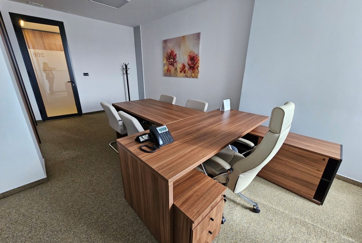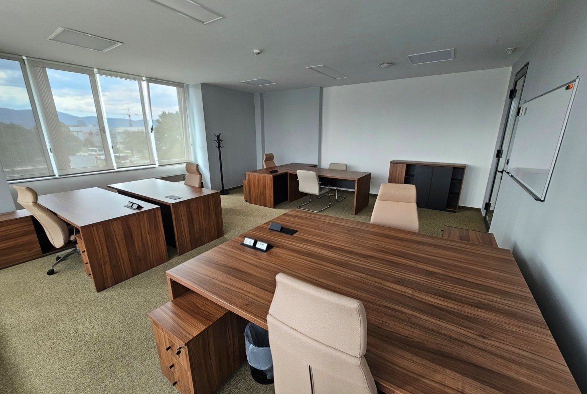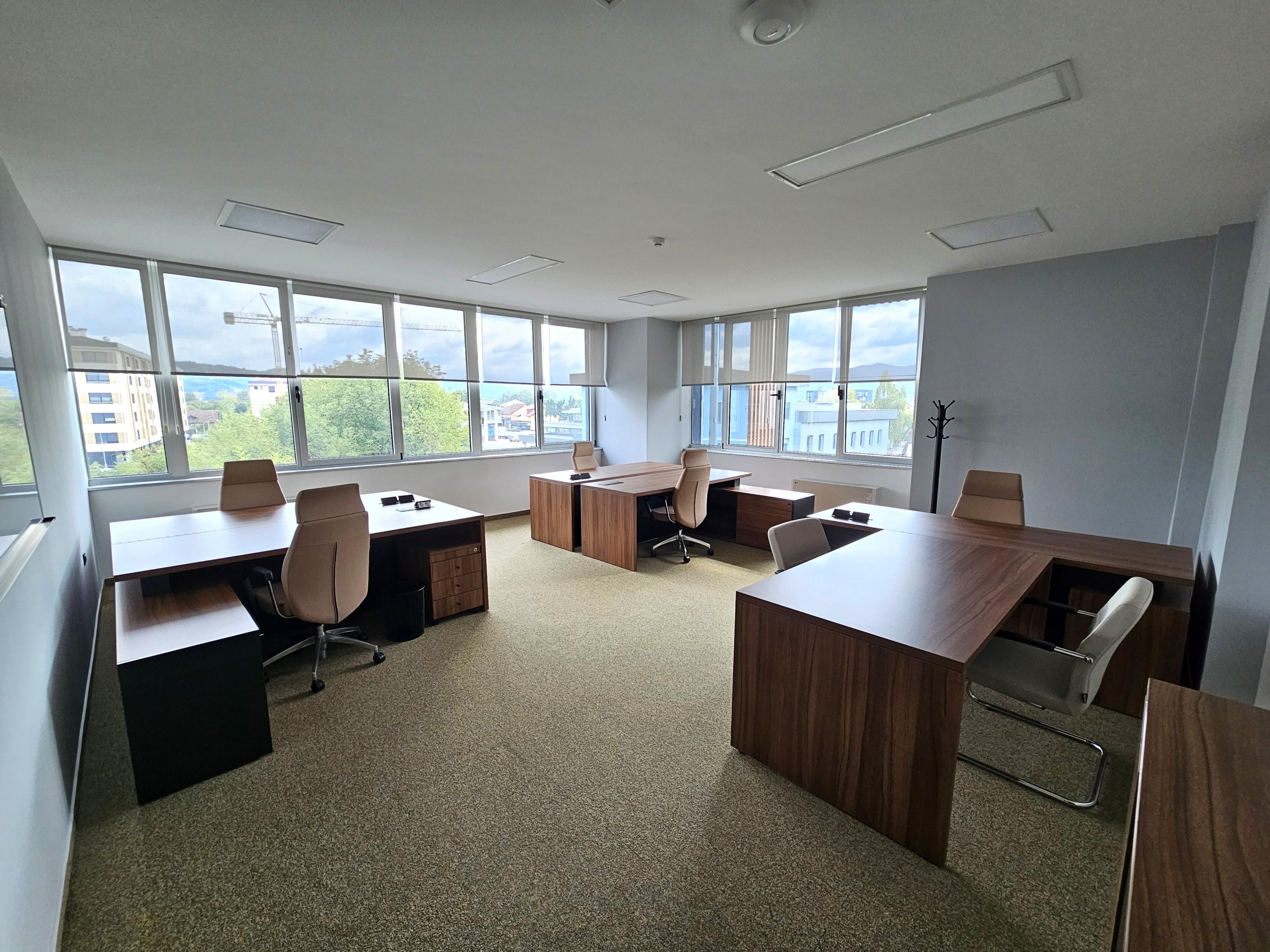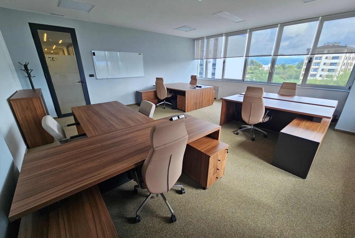 Trenutno su na raspolaganju dvije kancelarije koje je moguće iznajmiti pojedinačno ili obe zajedno ukoliko vam je potrebno ukupno 70m2. Kancelarija 1 od 22m2 (1x menadžerski sto koji je moguće razdvojiti, fiksni telefonski aparat, inverter klima, ormar), kancelarija 2 od 48m2 (1x menadžerski sto koji je moguće razdvojiti,+ 4x single, fiksni telefonski aparati, inverter klime, komoda).